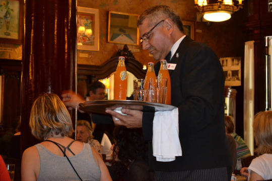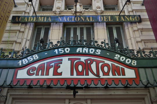 Es ist gar nicht so einfach, im Tortoni einen Tisch zu ergattern, denn die Schlangen vor dem Eingang sind fast zu jeder Tageszeit endlos lang. Nach dem dritten Anlauf, um neun Uhr morgens, klappt es endlich. Nur die Hälfte aller Tische ist besetzt. Am Nachbartisch diskutiert eine Gruppe Studenten über Politik. Sie schreien, um sich Gehör zu verschaffen, denn die Tangomusik ist sehr laut. Ab 10 gibt es keinen freien Tisch mehr, vor der Tür bildet sich die erste Schlange des Tages und drinnen übertönen hitzige Diskussionen und Gelächter die Musik.
