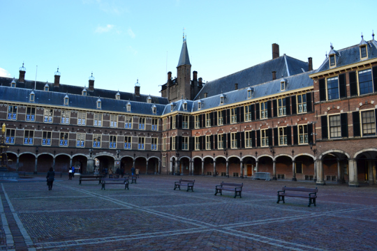 Vor dem Binnenhof treffe ich Stadtführer und Kunsthistoriker Remco Dörr. In den Gebäuden rings um den großen rechteckigen Innenhof befinden sich Regierungsgebäude und Parlament, das sich hier seit 1446 versammelt. Das älteste Gebäude, der Rittersaal, stammt aus dem 13. Jahrhundert. „Unter der Woche kann man hier durchaus dem einen oder anderen Minister auf dem Fahrrad begegnen“ sagt Remco. An diesem Morgen sind allerdings nur japanische Touristen unterwegs, die auf den Brunnen im Zentrum des Binnenhofs klettern und sich für das obligatorische Facebook-Foto in Pose stellen.