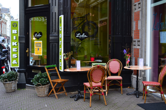 Lola Bikes & Coffee, Noordeinde 91. Öffnungszeiten: Mo-So 8-18 Uhr.