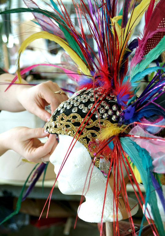 Kent führt uns hinter die Kulissen. Dorthin, wo Kostüme, Masken und Bühnenbilder entworfen werden. Die Kostüm-Werkstatt mit Blick auf den Fluss ist ein chaotisches Labyrinth aus Nähmaschinen, Büsten, bunten Stoffen und einer Unmenge von Knöpfen in allen Größen und Farben.