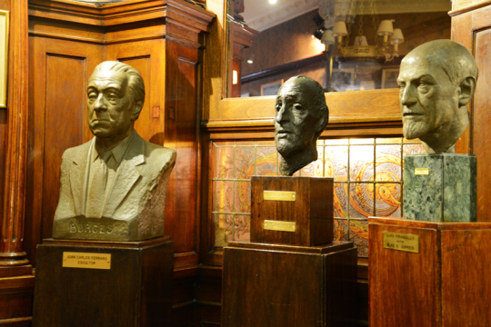 Bevor er erblindete verfasste Jorge Luis Borges an einem Tisch in der Ecke des Cafés einige seiner Kurzgeschichten. Dort sitzt er noch immer in Pappmaché verewigt zusammen mit der Dichterin Alfonsina Storni und Tangokönig Carlos Gardel, der hier aufgetreten ist. Im wahren Leben sind sich die beiden jedoch nie begegnet.