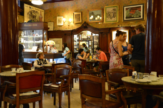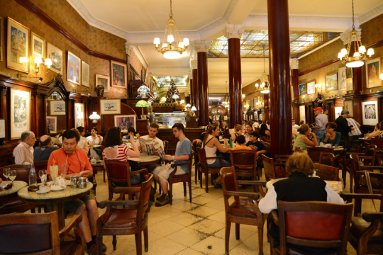 Kaffeehäuser sind in Buenos Aires so wichtig wie damals im alten Wien. Sie sind das eigentliche Wohnzimmer der Hauptstädter. Hier wird diskutiert, gestritten, über Politik, Wirtschaft und die Verwandtschaft geschimpft, hier werden Pläne geschmiedet und Verträge unterschrieben. Rund 8000 Cafés soll es in Buenos Aires geben.