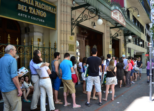Das Tortoni ist kein Café, in das man so einfach hinein spazieren kann. Man muss warten. Die Schlangen vor dem Eingang sind fast zu jeder Tageszeit endlos lang. Es sei denn, man kommt gleich morgens um 8, man ist Stammgast, eine lokale Berühmtheit oder Politiker auf Staatsbesuch.