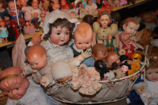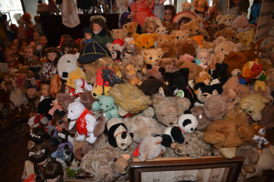 Die älteste Puppe stammt aus dem Jahr 1840. Der älteste Teddybär ist 104 Jahre alt. Sein Fell ist abgewetzt. Wurde er irgendwann einmal von einem Kind heiß geliebt? Viele Puppen haben Charakterköpfe, angefertigt nach realistischen Vorbildern, mit rosigen Wangen und halb geöffneten Mündern, aus denen weiße Zähne blitzen. Sie blicken den Besucher neugierig, nachdenklich, skeptisch, erstaunt und schelmisch an. Manche Puppen sehen traurig aus, andere sorgenvoll und ernst. Jede von ihnen scheint eine Geschichte zu erzählen.