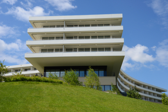 Das im November 2012 eröffnete Kurhaus hat die Form des Taukreuzes, das mit seinen drei Armen für Offenheit und Harmonie von Körper, Geist und Seele steht.