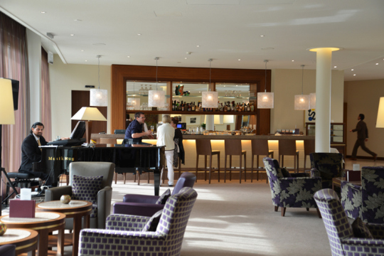 Sanft dringen die Töne des zeitlosen Klassikers „The very thought of you“ durch das modern gestaltete Atrium, das sich über vier Etagen erstreckt. Das Glasdach gibt einen Blick auf den strahlend blauen Himmel frei. Außer dem Mann am Klavier befinden sich nur wenige Gäste in der Lobby. Die meisten sitzen an diesem sonnigen Nachmittag bei Tee und Kaffee auf der Terrasse, die an den hauseigenen Park grenzt.