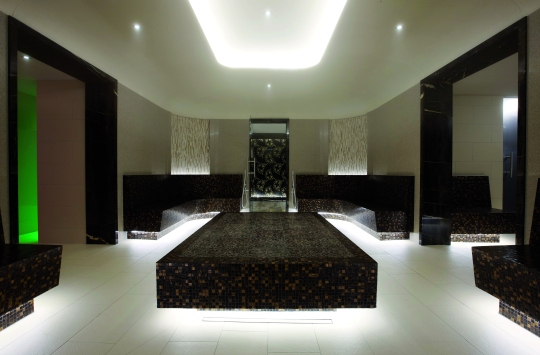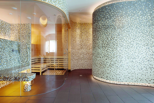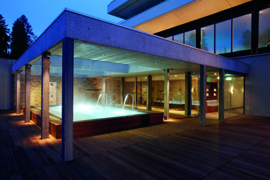 Ich bin auf dem Weg zu meinem Personal Training im ersten Untergeschoss. Da das Gebäude in Hanglage liegt, verfügen alle Teile der Spa-Anlagen in den Untergeschossen sowie auch die Fitness- und Gymnastikräume über Tageslicht. Frau Schumacher, die Physiotherapeutin, empfängt mich herzlich und weist mir eine Matte zu. Im Sitzen besprechen wir kurz mein Rückenproblem (Schmerzen im Bereich L5/S1) und schon geht es mit den Übungen los. Nach einer dreiviertel Stunde kenne ich vier neue Übungen zur Bauchkraft, drei zur Mobilisation und drei zum Dehnen. Frau Schumacher skizziert jede Übung auf einem Blatt, das sie mir nach einem Abschlussgespräch überreicht.