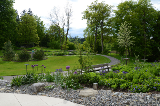 Nach dem Personal Training mache ich einen Spaziergang durch den weitläufigen Park, wandere hinauf zur Mariengrotte, die noch aus den Tagen der alten Oberwaid stammt und genieße die Ruhe und den Blick auf den Bodensee und die Berge.