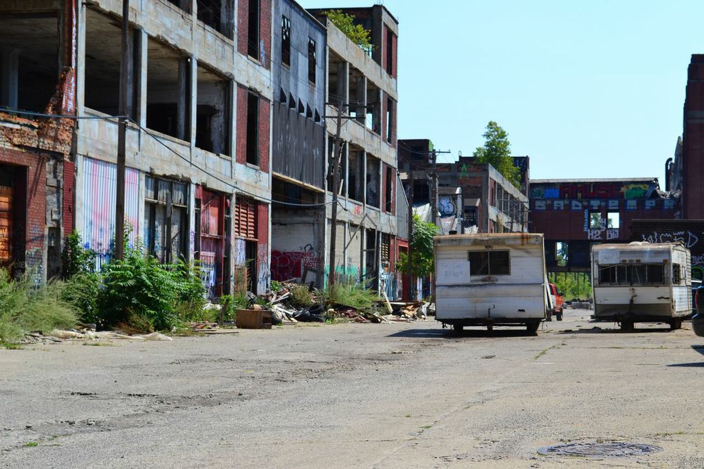 „Wow, das ist ja schaurig schön!“ sagt eine junge Berlinerin zu ihrem Freund, als sie neben uns vor der gigantisch großen Ruine der Firma Packard stehen. Die riesigen Fabrikgebäude auf dem 330.000 Quadratmeter großen Gelände des ehemaligen Luxusautoherstellers wirken mit ihren ausgeschlagenen Fensterscheiben und der absoluten Stille ringsum fast unheimlich. Die Gebäude hätten längst abgerissen werden müssen, aber dazu fehlt das Geld. Ich hatte so viel über dieses Gelände gehört, dass ich es unbedingt sehen wollte.
