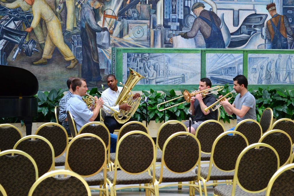 Keine Angst vor Detroit! Es ist Samstag. Auf dem Campus Martius Market in Downtown Detroit herrscht buntes Treiben. Radfahrer sammeln sich zu einer Tour, Künstler bieten ihre Werke an, Straßenmusiker spielen alte Songs von CCR, ein Schülerorchester probt und rings herum sitzen Detroiter aller Altersklassen auf Bänken und Stühlen, essen und trinken oder frönen dem Nichtstun. Wo ist die Geisterstadt von gestern?