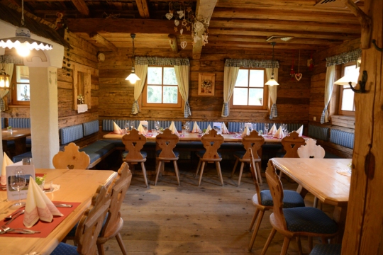 Tipp: Für Themenabende bietet Jora Mountain Dining einen Taxidienst vom Parkplatz des Sesselliftes zur Hütte an. Mittags werden täglich wechselnde Menüs angeboten, darunter vegetarisches, Alm- und Gourmet-Menü Preise: Ein 6-gängiges Menü kostet 59 Euro pro Person, ein 4-gängiges Menü 49 Euro pro Person, jeweils ohne Getränke.
