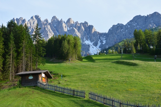 Das Restaurant liegt in bilderbuchartiger Lage oberhalb von Innichen (italienisch San Candido) am Fuße des knapp 3.000 Meter hohen Haunolds – im Sommer inmitten von saftigen Wiesen, im Winter direkt auf den Skipisten der Sextner Dolomiten.