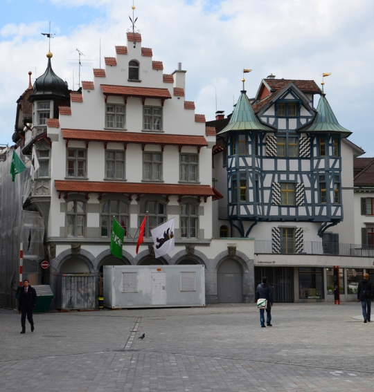 Zweiter Versuch. „Psst, leise“, flüstert mir der Heilige zu, als ich die Kathedrale betrete. Der helle Innenraum soll mit malachitgrünem und lehmgelbem Stuckgeschnörkel verziert sein. „Bodenseebarock“, sagt die Stimme auf dem Audioguide, die sich mit Gallus abwechselt. Ich sehe allerdings kein Malachitgrün, sondern nur blau verzierte Decken. Auch die Kuppel, die nun beschrieben wird, sehe ich nicht. „Ist das tatsächlich die Kathedrale?“, frage ich mich. Nein, das ist die Laurenzenkirche, finde ich wenig später heraus. Es ist hoffnungslos. Ich komme mit dem Audioguide nicht klar und bringe ihn ins Tourist Office zurück. Am nächsten Morgen nehme ich an einer Stadtführung teil.