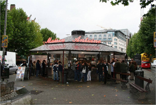 Die besten Fritten der Welt, so sagen die Brüsseler, gibt es bei Antoine. Antoine Desmet und seine Frau eröffneten ihr „Maison Antoine“ am Place Jourdan im Jahr 1948. Heute führen seine Enkel, Pascal und Thierry, den Fritten-Pavillon bereits in der dritten Generation, an sieben Tagen der Woche (von 11.30 bis 1.00 Uhr nachts, freitags und samstags sogar bis 2 Uhr). Als der im vorigen Jahr abgedankte König Albert II seinen 70. Geburtstag feierte, ließ er seinen Gästen Fritten servieren, die in der königlichen Küche von einem mobilen Team des „Maison Antoine“ zubereitet wurden. Noblesse oblige!