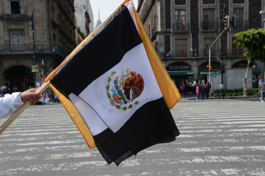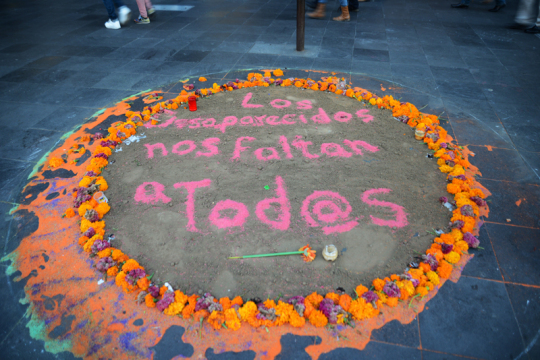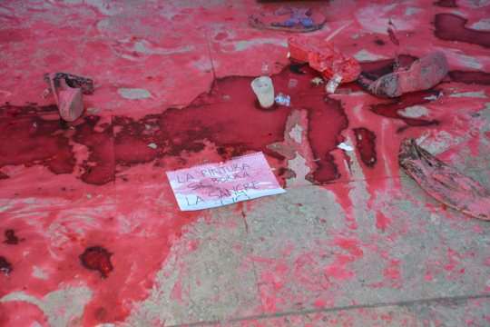 “Die Farbe verblasst, das Blut nicht”. Demonstration vor dem Museum der Schönen Künste in Mexiko City.