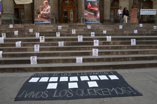 Euer gewaltsamer Tod wird das Land verändern: Abel, Alexander, Adán, Abelardo, Cesar Manuel, Antonio, Benjamín, Carlos Iván, Bernardo, Carlos Lorenzo, Christian, Cutberto, Dorian, Christian Tomas, Giovanni, Everardo, Felipe, Emiliano, Jorge Luis, Jorge Antonio, Jonás, Israel, Jorge Aníbal, Jesús, Jorge, Israel Jacinto, José Ángel, José Luis, José Eduardo, José Angel, Leonel, Luis Ángel, Magdaleno Rubén, Jhosivani, Julio Cesar, Luis Ángel, Mauricio, Miguel Angél, Martín, Marcial, Marco Antonio, Miguel Ángel, Saúl.