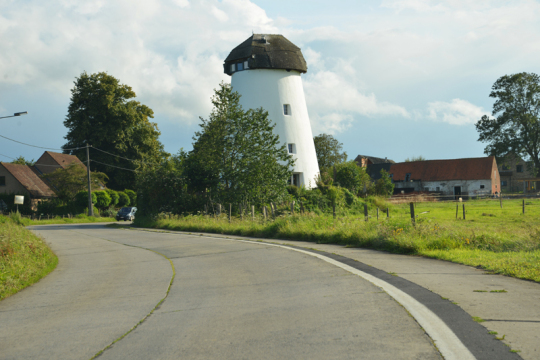 Die Windmühle in den flämischen Ardennen hat zwar keine Flügel mehr, dafür ist sie im Inneren ein Kunstwerk. Die Stille, die sie umgibt, wird an einigen Tagen nur vom Pfeifen des Windes oder dem Muhen einer Kuh unterbrochen. Die Landschaft aus gelben Feldern und grünen Wiesen rund um die Mühle wirkt wie ein Gemälde aus einer längst vergangenen Zeit. Gent ist nur eine halbe Autostunde, Brüssel knapp eine Fahrtstunde entfernt. Gefühlt sind beide Großstädte jedoch viel weiter weg.