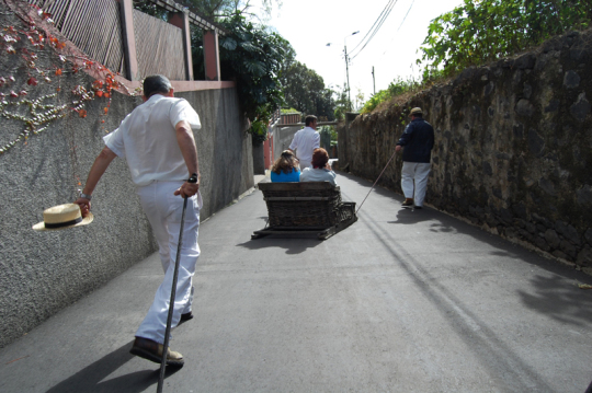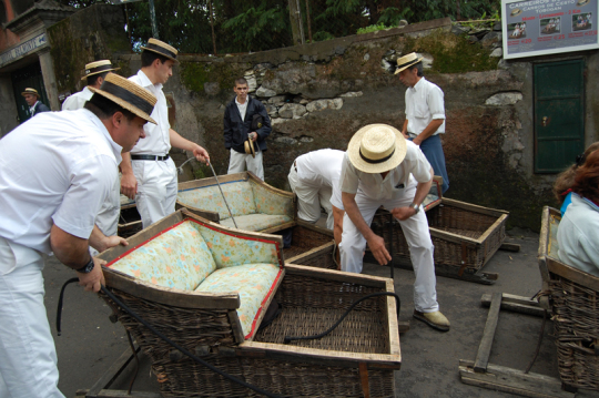 Von allen Verkehrsmitteln der Welt ist der Korbschlitten auf Madeira eines der einzigartigsten. Hemingway beschrieb die steile, fünf Kilometer lange Rutschpartie vom hochgelegenen Villenvorort Monte hinunter nach Funchal als eines der aufregendsten Erlebnisse seines Lebens.