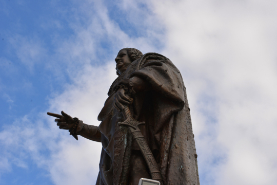 Mitten auf dem Platz steht Stanislaw in Bronze gegossen und blickt von seinem Sockel herunter auf Touristenscharen, Flaneure, Cafés und die ganze Pracht rings um den Platz. Sein rechter Arm ist ausgestreckt. So, als wolle er sagen: „Schaut nur, was ich geschaffen habe!“