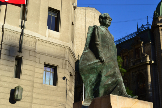 An der Südseite der Plaza de Armas erinnert seit wenigen Jahren eine Statue an Allende.