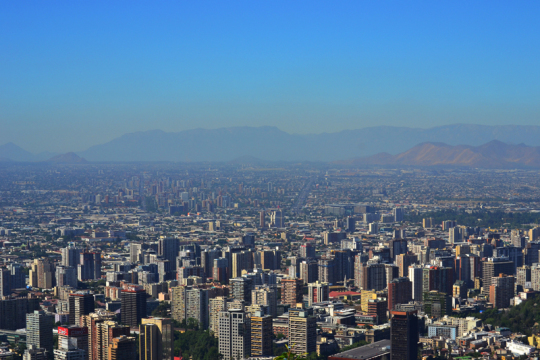 Gemächlich ruckelt die alte Standseilbahn hinauf zum Cerro San Cristóbal, der auf dem Gipfel von einer 30 Meter hohen Marienstatue beherrscht wird. Der Himmel ist an diesem Morgen strahlend blau, über uns fliegt deutlich sichtbar eine Maschine der Lan Chile, und der Panoramablick auf Stadt und die Anden, die wie eine imposante Kulisse hinter den Wolkenkratzern auftauchen, ist atemberaubend.